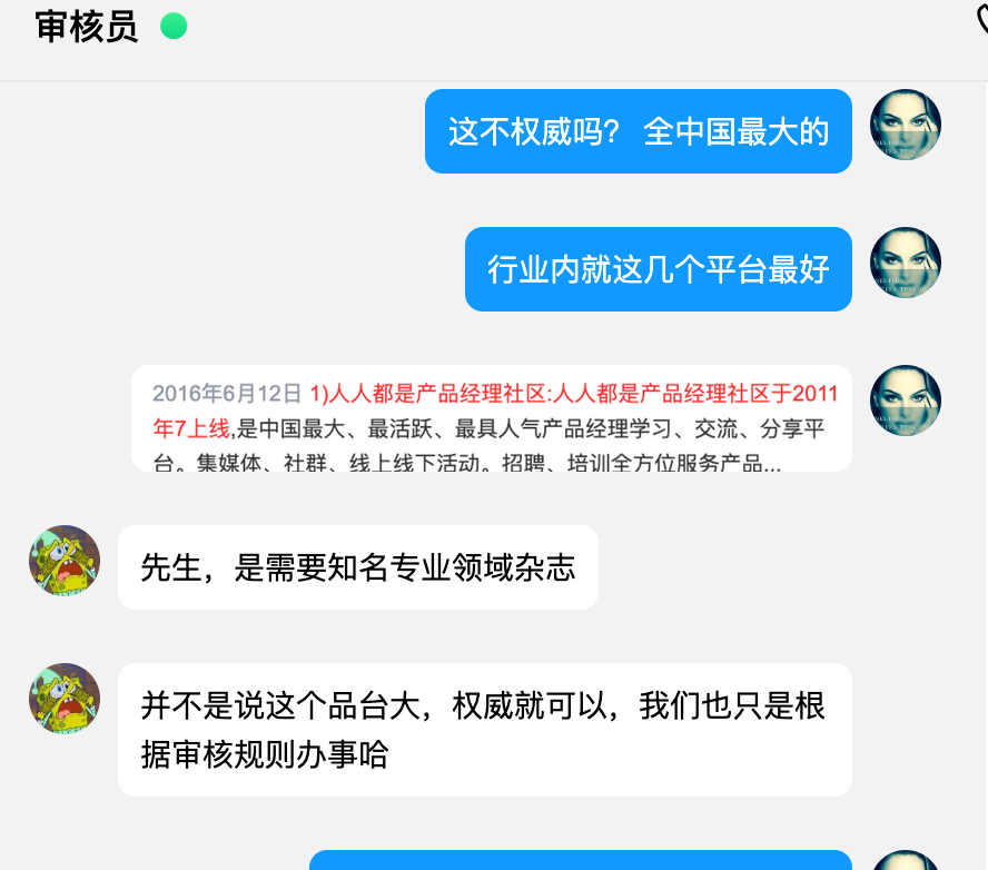 我已经提供了工牌、权威媒体文章发表,非说要杂志,我就想问,互联网行业哪里来的杂志,给谁看?