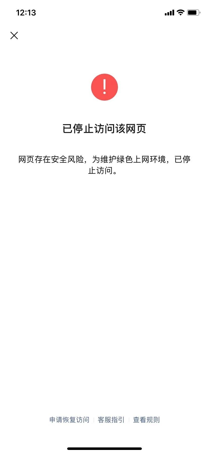 现象:使用微信扫一扫,直接相机扫普通链接二维码可以正常跳转,从相册中识别则提示“已停止访问该网页”