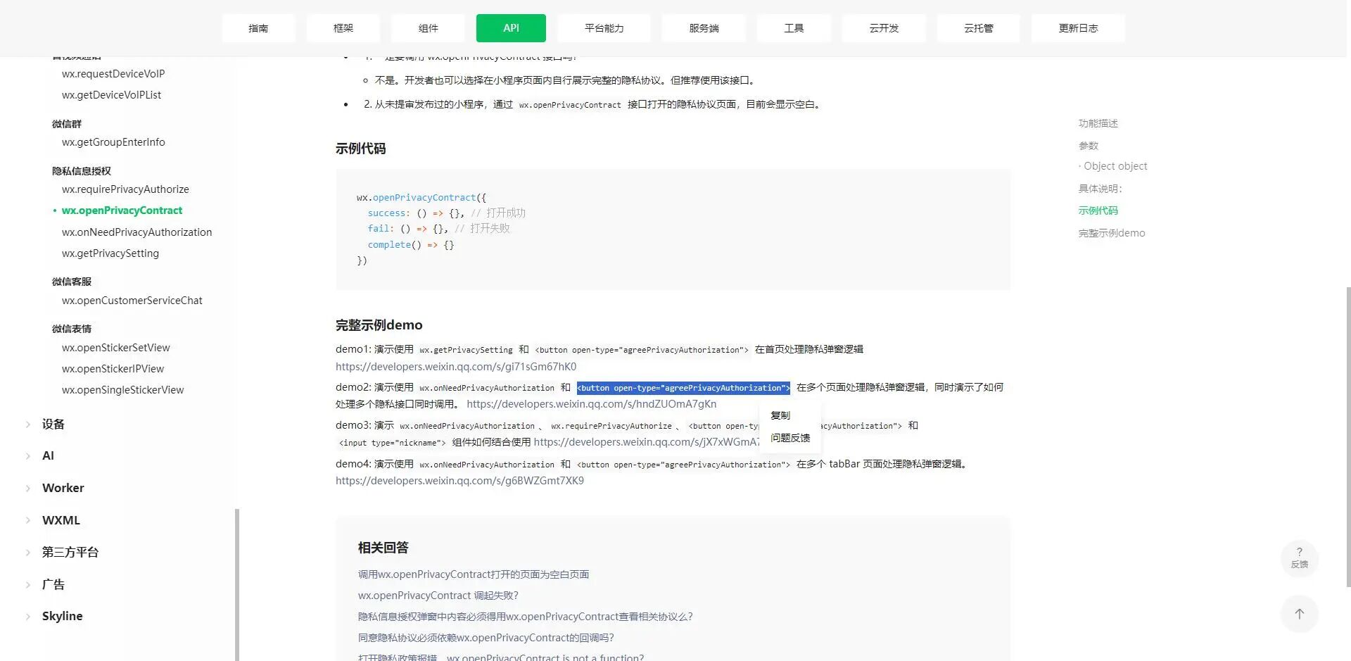 他要我使用弹窗或者使用wx.onNeedPrivacyAuthorization OK 我去看官方文档