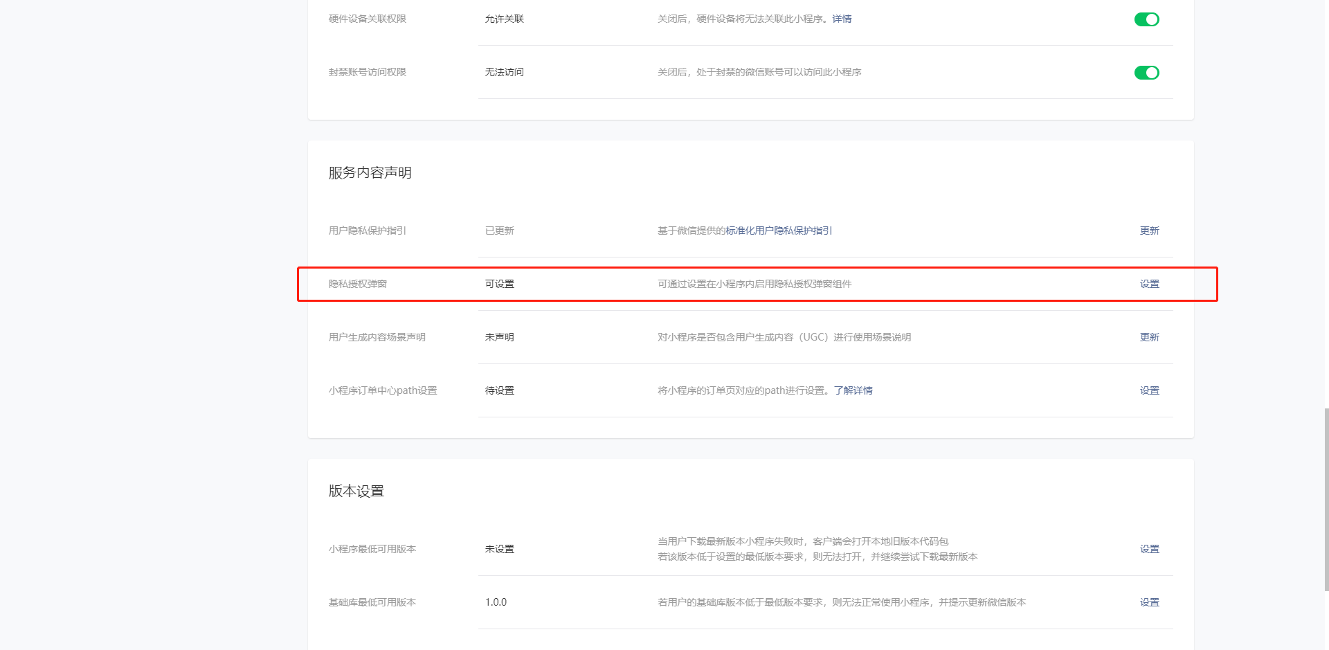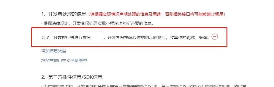 首先小游戏设置里的隐私已经声明过了 添加了需要收集昵称头像