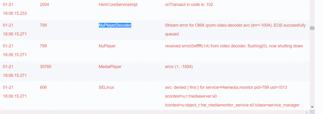 播放视频,视频播放到2分多钟时卡住不动。华为nova手机 ,使用testin测出来的