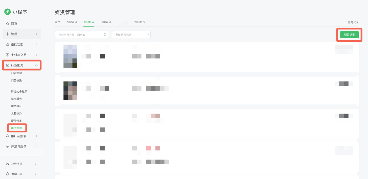 - 小程序后台:「媒资管理」-「剧目提审」-「剧目提审」