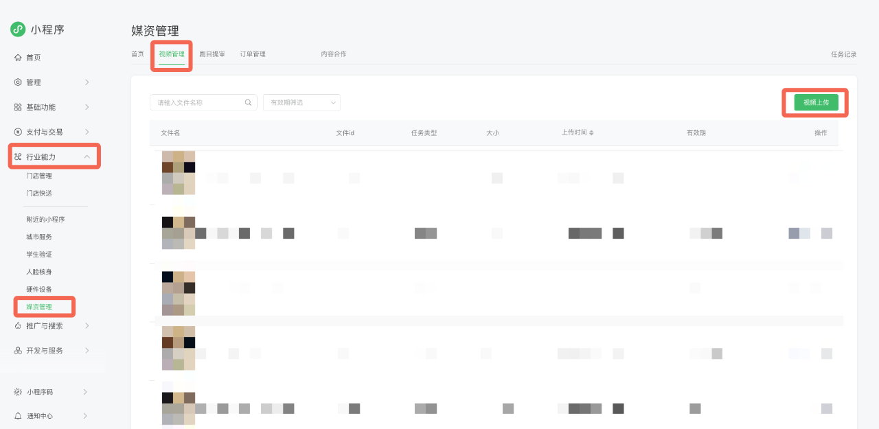 小程序后台:「媒资管理」-「视频管理」-「视频上传」