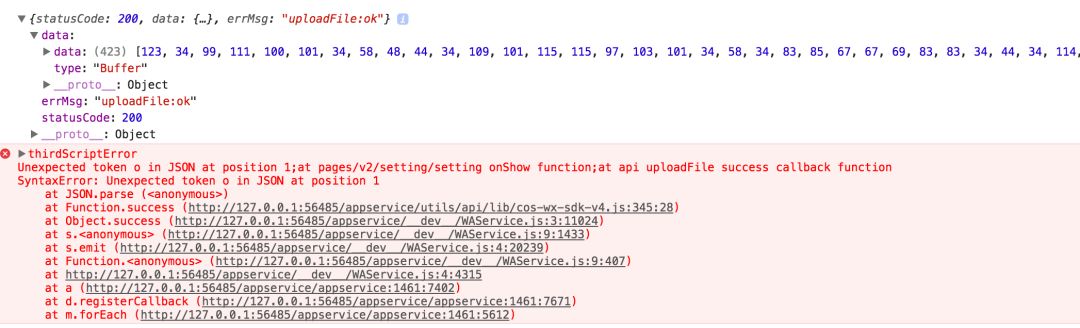 反馈bug,在最新版的MAC微信开发工具上wx.uploadFile没有按文档规定返回数据(string),而是返回了Buffer。参考文档:https://mp.weixin.qq.com/debug/wxadoc/dev/api/network-file.html