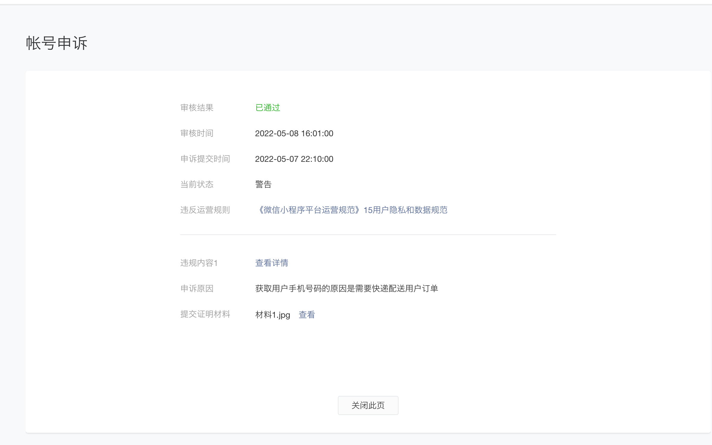 如图申诉结果是通过的状态,但获取手机号授权的功能还是不可以使用,请问是什么问题?