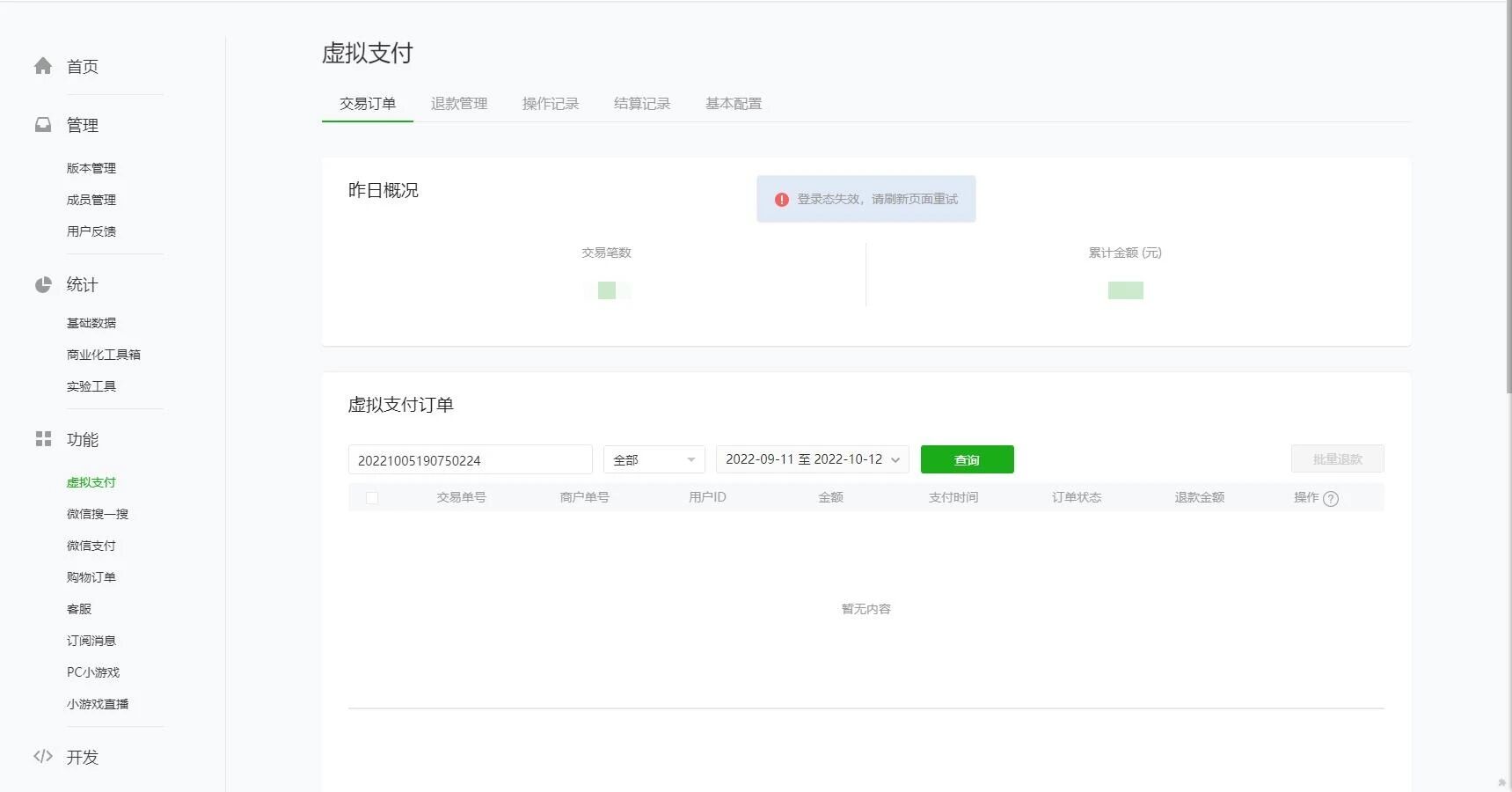 您好,收到一名玩家申诉未成年退款,充值时间在2022年10月5日,但是虚拟支付无法查看那天的充值记录,提示报错,请问如何给玩家进行退款