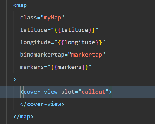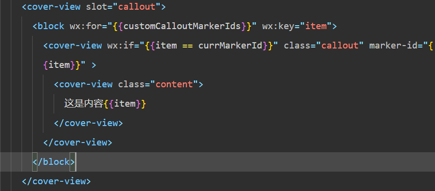 2.cover-view中的内容,callout的展示由wx:if控制,当marker对应的id与当前点击的id相等时才展示