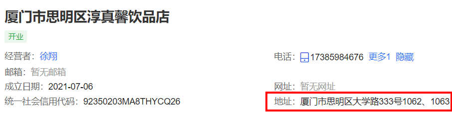 证件住所查到是 厦门市思明区大学路333号1062、1063