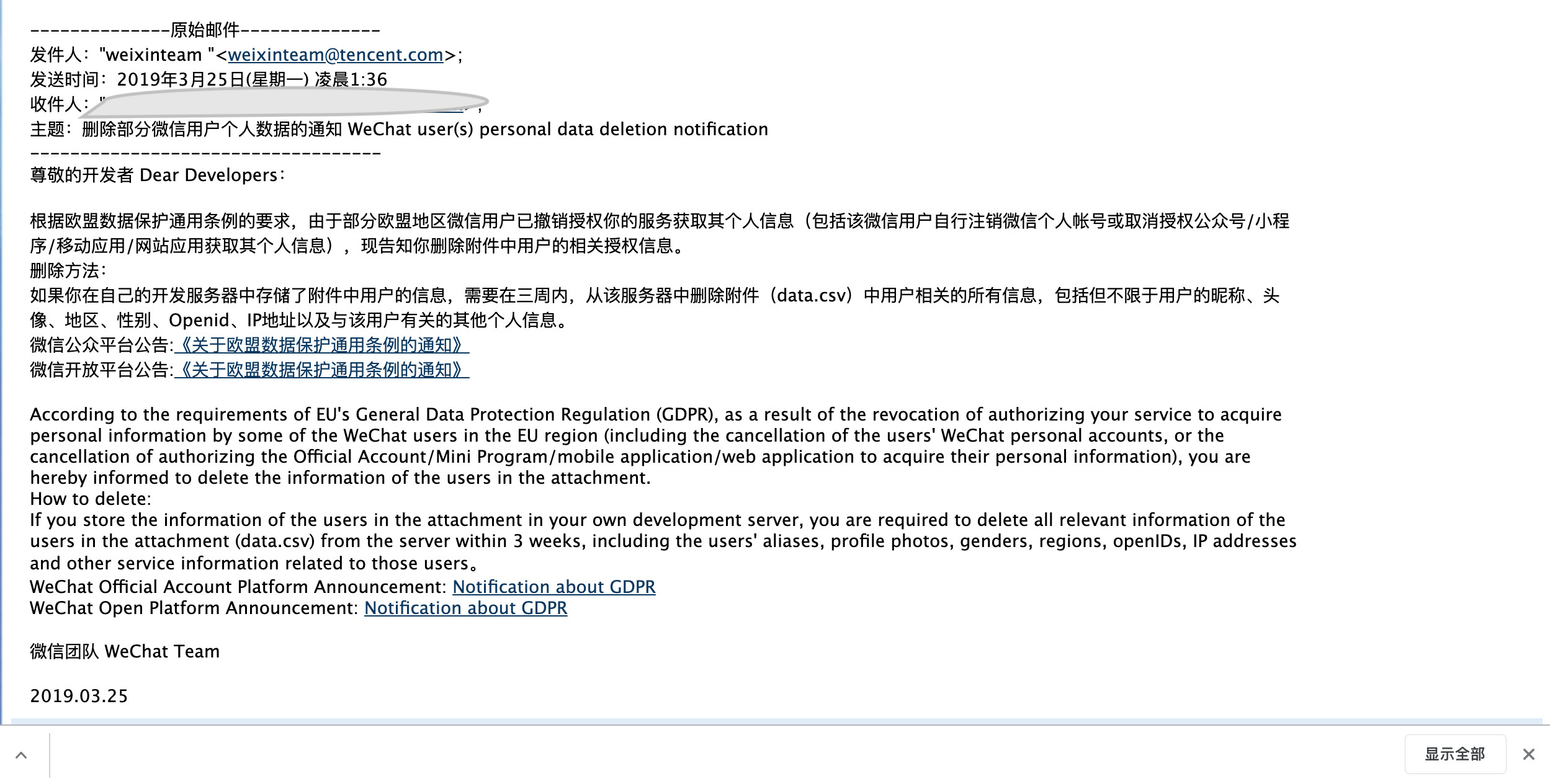 已根据一下邮件删除用户,可我们的欧盟用户访问不了了,怎么办呀?