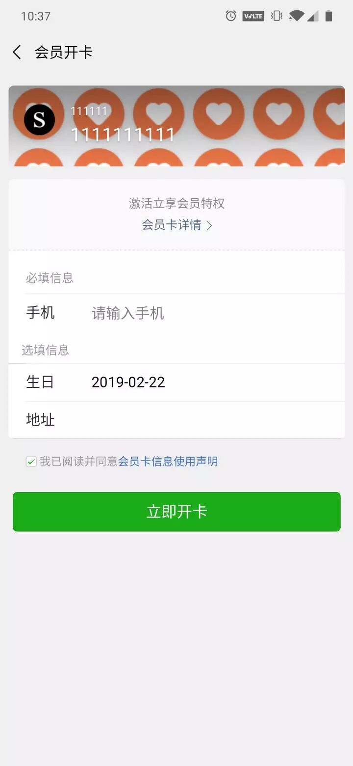 开卡组件下面的按钮应该是提交按钮,只是提交信息,不是直接激活会员卡