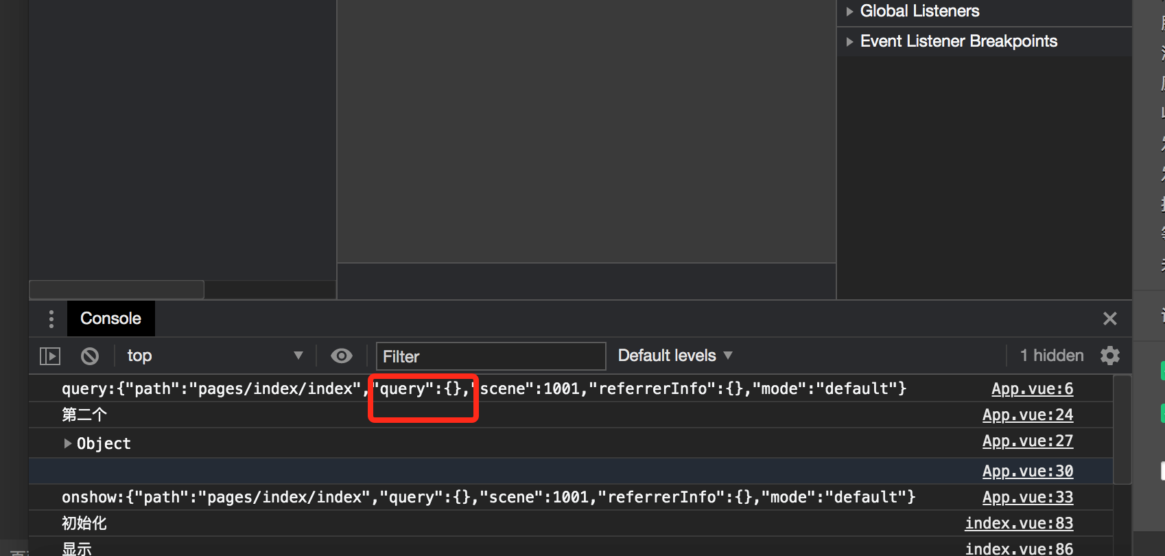 3、通过onLaunch获取携带参数,但是打印query参数为空