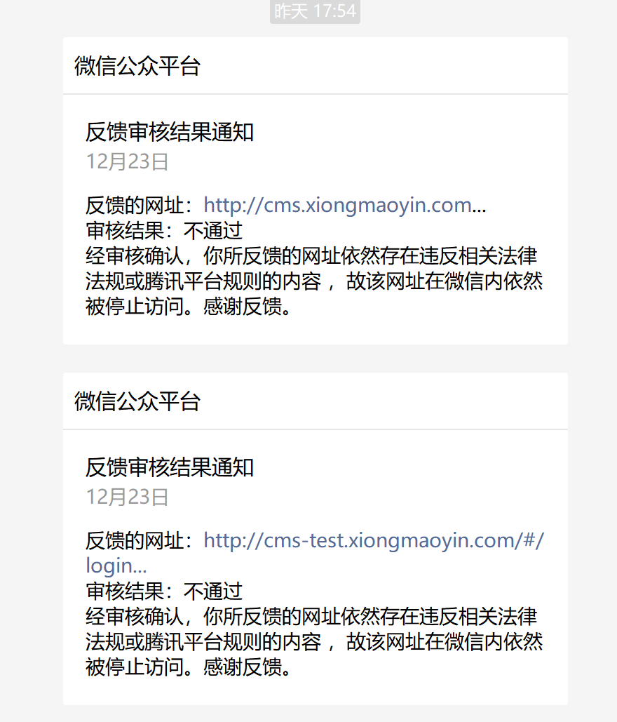 多次申请恢复网页均被拒绝,理由是因为反馈的网址任然存在过度营销等内容……可是已经不能访问了啊。