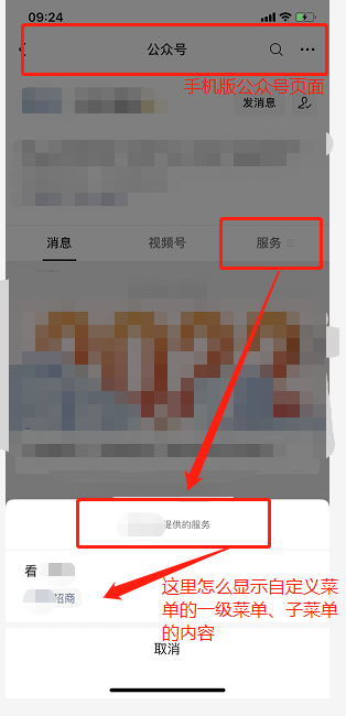 手机版公众号主页的服务项,怎么显示自定义菜单栏的内容?自定义菜单栏的一级菜单和子菜单,怎么同步到这里?
