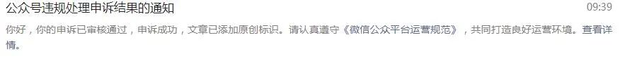你申诉的是文章被取消原创的违规,原创功能违规你没申诉,你可以在通知中心找到功能被封的通知申诉试试