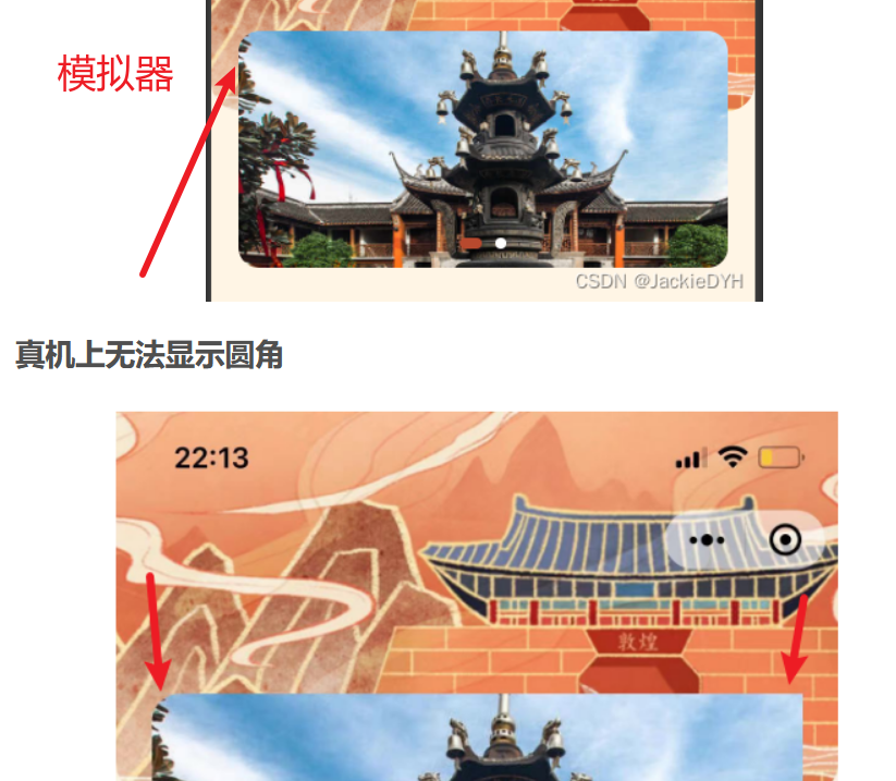 遇到了同样的问题 ios可以 安卓的不可以按照,在swiper上加overflow:hidden 和transform: translateY(0);在真机上轮播图的圆角只有下面圆角生效, IOS的没问题,开发者工具上也没问题,各位大佬有什么好的办法么?