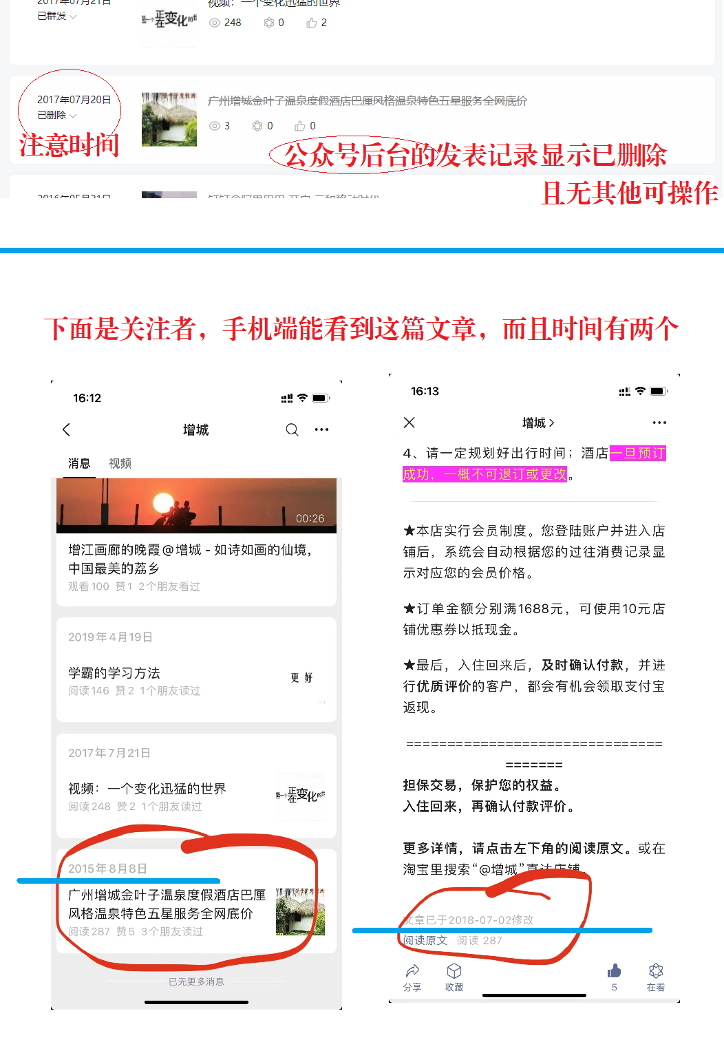 反馈具体问题:我在公众号平台的后台把一篇文章已经删除了,为什么关注公众号的朋友们,仍然可以看到这篇文章?请不吝赐教