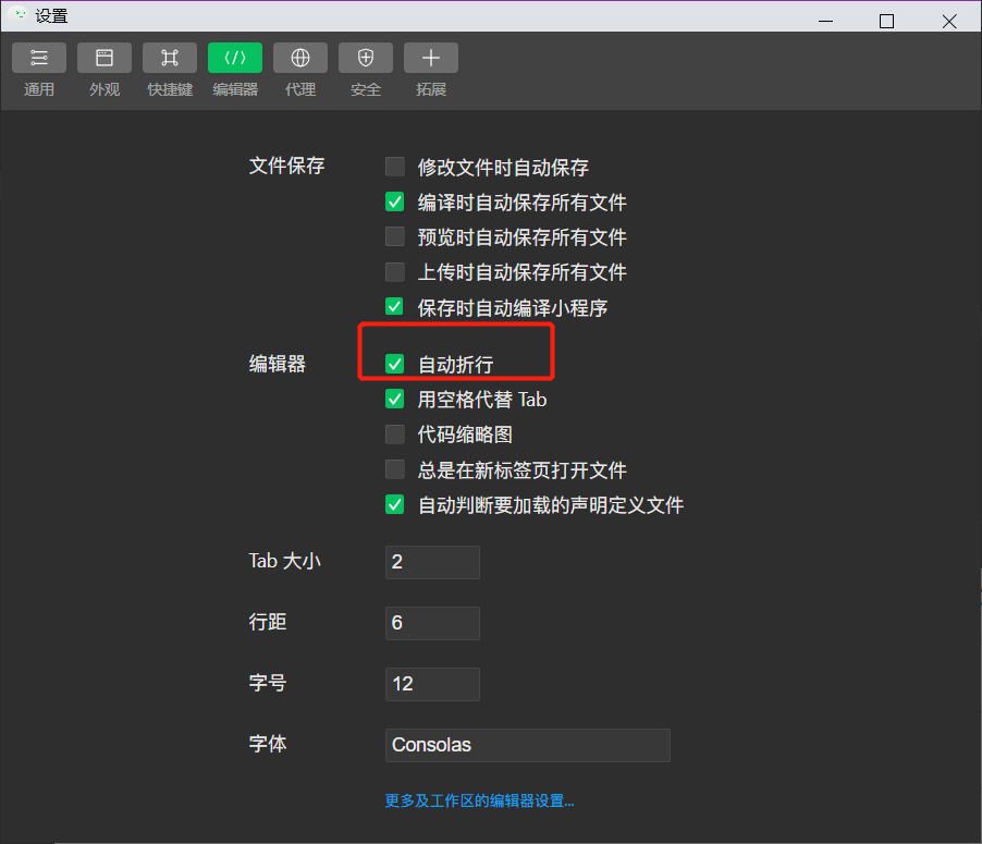 以前的会换行的,今天更新了发现一行到底绝不换行,要自己去拉滚动条,还是说要在哪里配置吗,但又没找到。如果是全屏来看应该没啥问题,但要对设计图要缩小窗口敲代码,如果没有这个功能还是挺不方便的