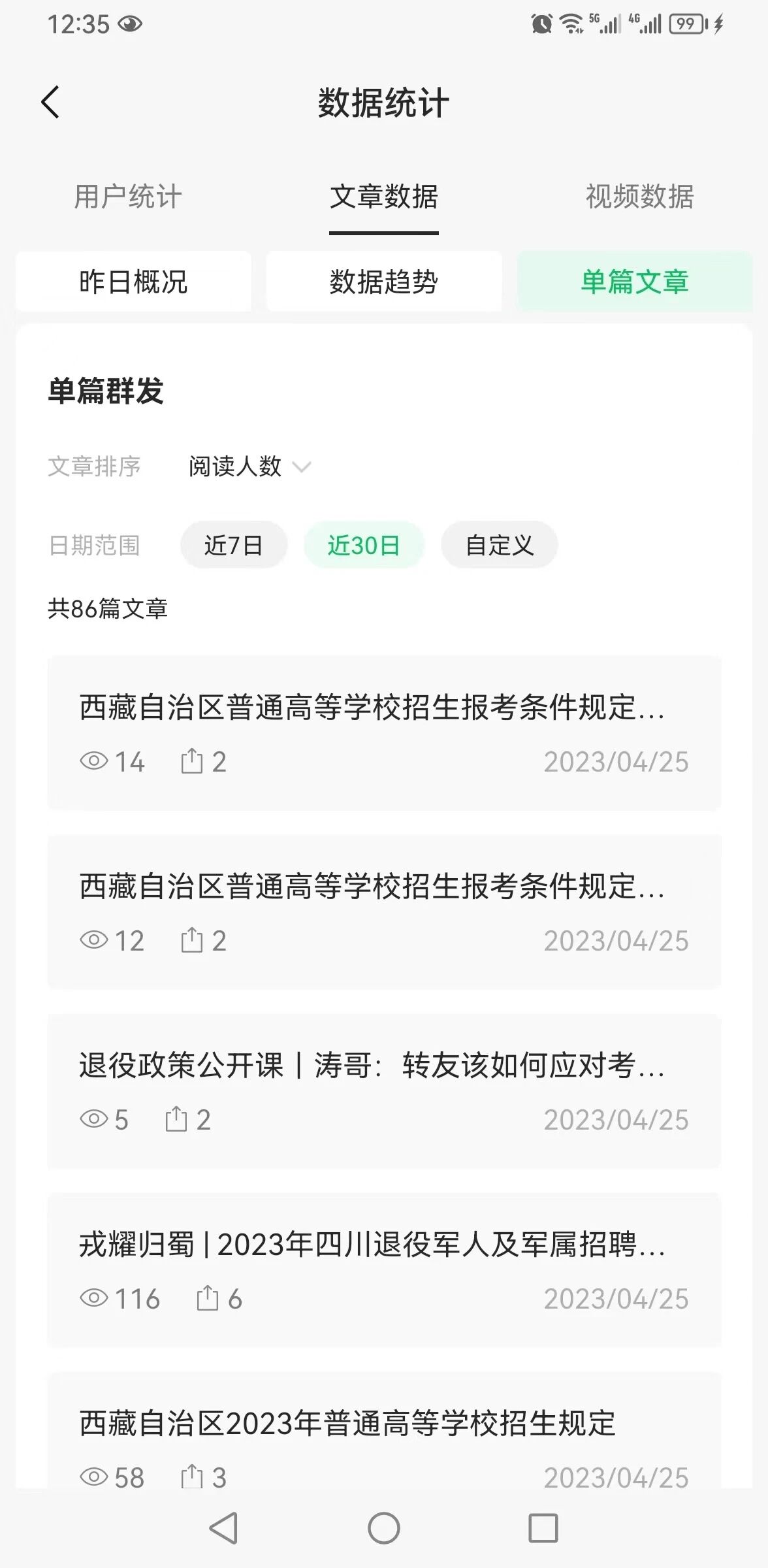 订阅号助手→我→数据统计→文章数据→单篇文章-单片群发→文章排序-阅读人数,不能以“阅读人数”排列,请修正为谢!