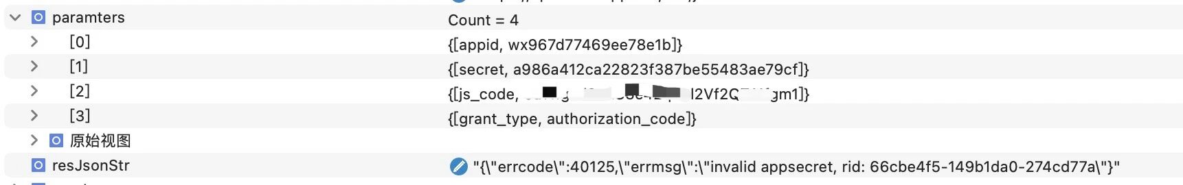 在后端使用时提示40125,invalid appsecret