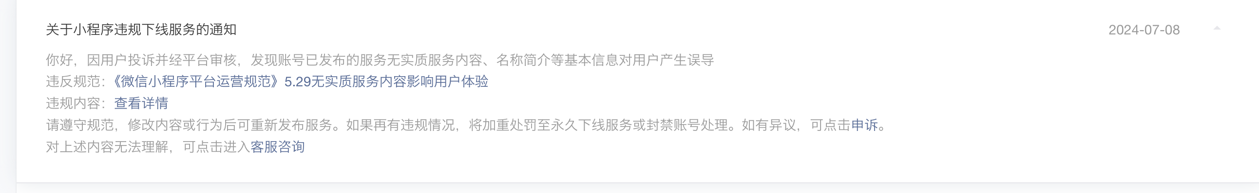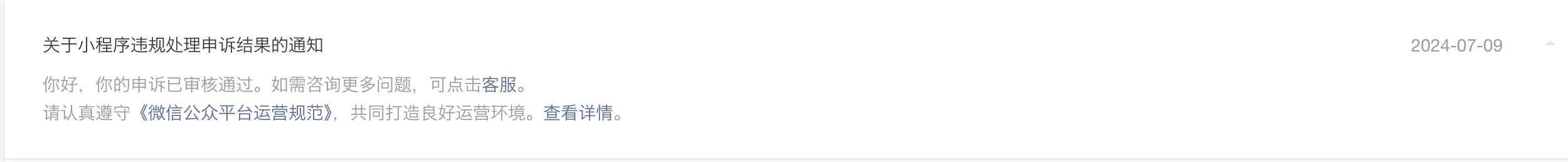 小程序违规被下线,现在已经整改,申诉通过了,但是搜索通过关键词搜索还是搜不到。