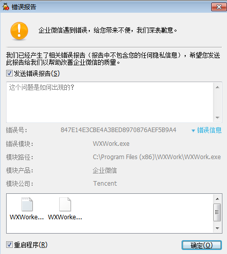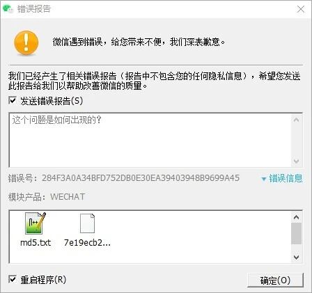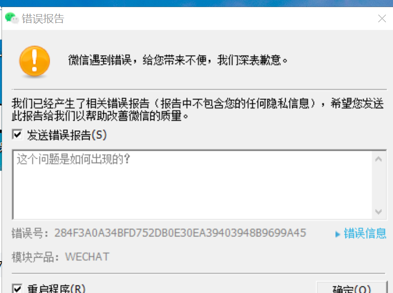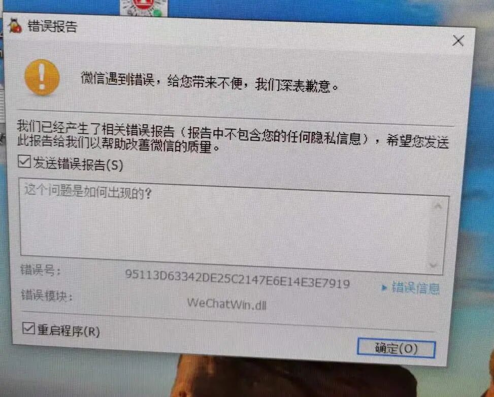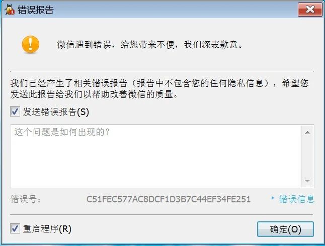 微信遇到错误,给您带来不便,我们深表歉意,错误号 9511