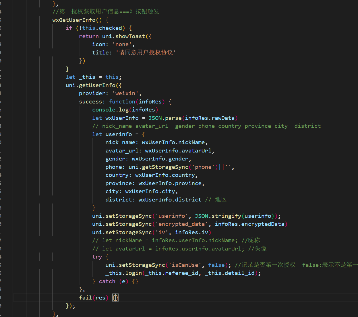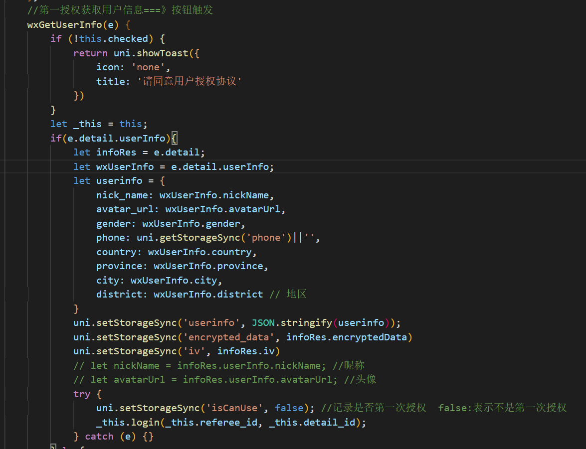 现在改成这样了,没有调用uni.getUserInfo了