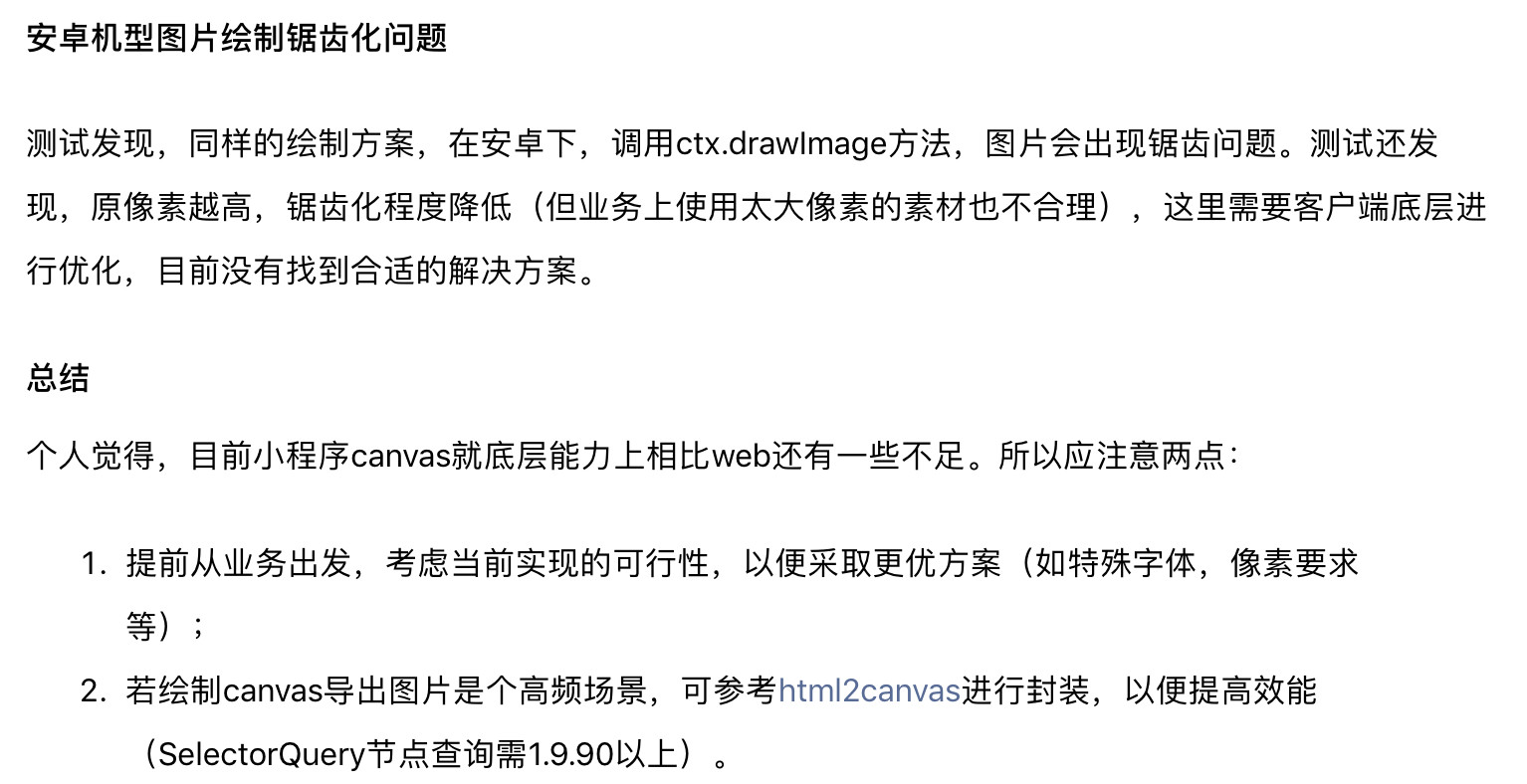 测试发现,同样的绘制方案,在安卓真机下,调用ctx.drawImage方法后,canvasToTempFilePath保存的图片会出现严重锯齿问题。