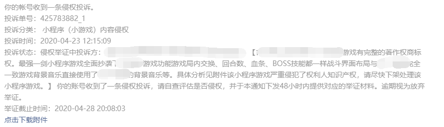 我有一个小游戏。已经上线了。但是被投诉说侵权了。我这边也已经举证的但是没有后来了。不知道现在是什么情况。也找不到客服咨询。请问大佬们。我这个游戏还能上线吗?