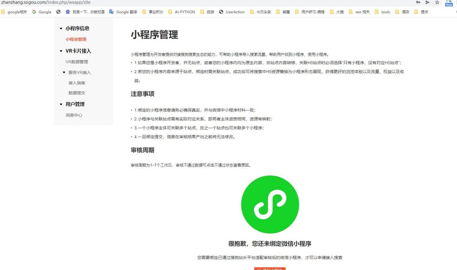 请教一下,微信小程序如何关联到搜狗站长上, 如图所示, 一直找不到入口, 直接输入地址就跳回首页了。