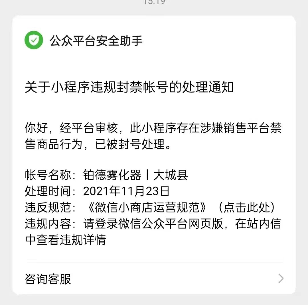 平台管理员您好,我在收款小账本里面上架了电子雾化器相关产品,然后账号直接被封禁了,我不知道规则不让上架,直接给我封了,我全部删除,不在上架电子烟相关产品了行吗。能麻烦解封吗,看在第一次的份上。