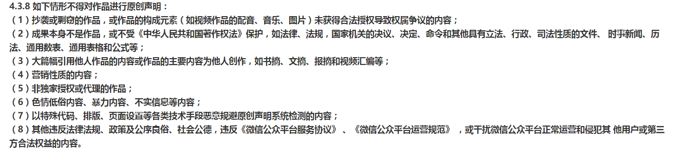 2、平台原创运营规范已经明确规定了,整合内容,带有营销或者宣传性质的内容不能声明原创。
