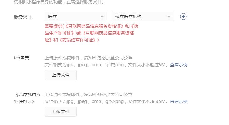 里面选择了我是没有网站的,没有ICP备案这个文件啊,我只有《医疗机构执业许可证》,这个怎么办啊? 我后期准备用的小程序也是由第三方提供的。这个ICP备案我提供第三方的?