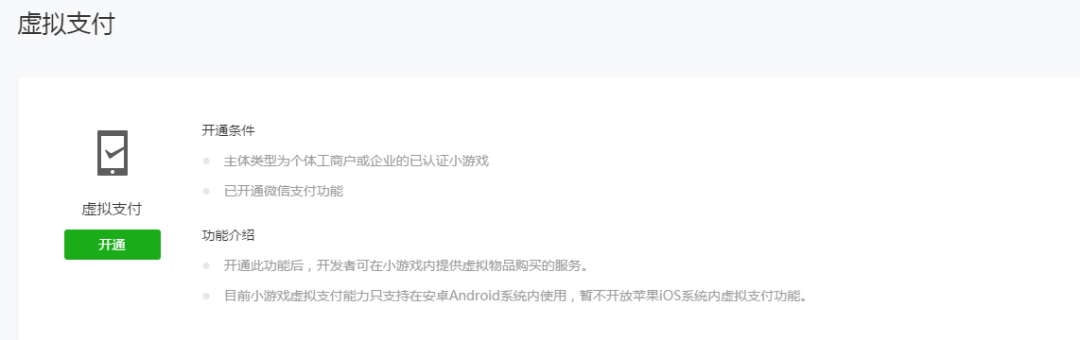 wx.requestMidasPayment({ mode : 'game', env : 1, offerId : "*", platform : "android", buyQuantity : 10, currencyType : 'CNY', zoneId:1, success : res => { console.log("requestMidasPayment success"); console.log(res) }, fail : res=> { console.log("requestMidasPayment failure"); console.log(res) }, complete : res => { console.log("requestMidasPayment complete"); } }); |
