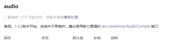 使用新的api接口: https://developers.weixin.qq.com/miniprogram/dev/component/audio.html