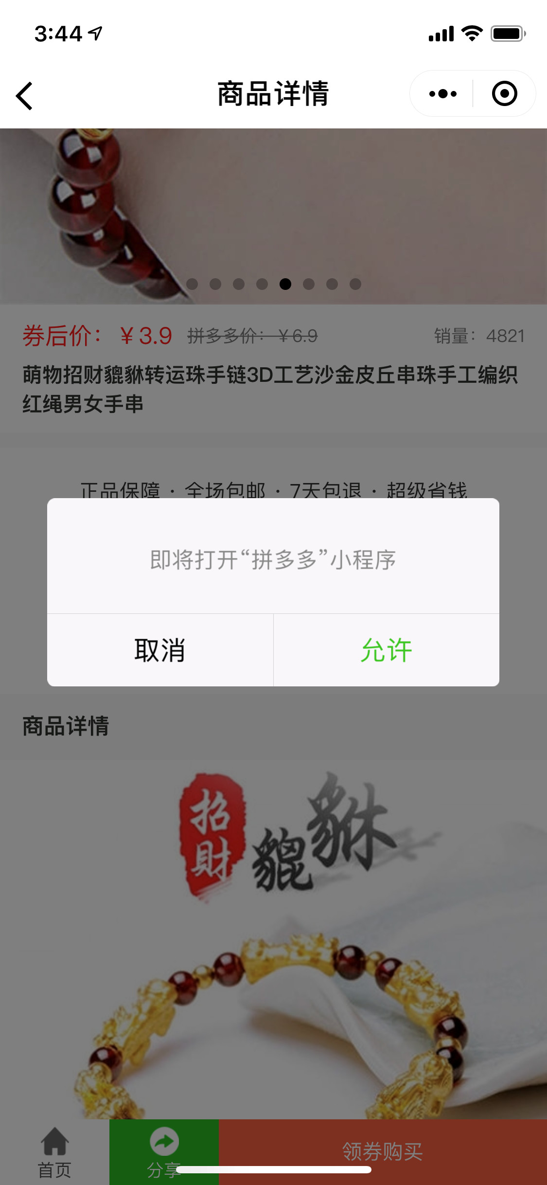 今天看到一个小程序,可以看到拼多多的3.9包邮的页面,展示的都是拼多多的优惠券,点击领取优惠券就会自动跳转到拼多多小程序的领取优惠券页面,请问这是怎么做的啊?有知道的吗
