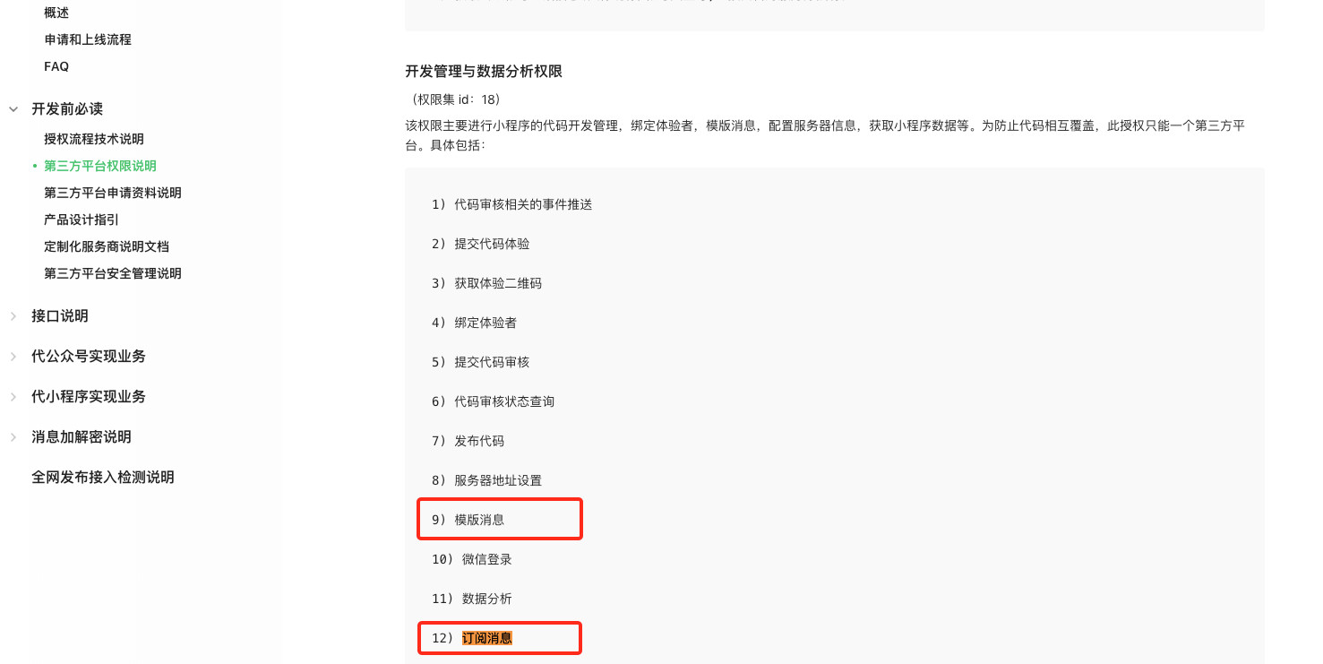 如果小程序授权给第三方平台的权限集中之前有“开发管理与数据分析权限”,替换成订阅消息后是否需要重新授权?