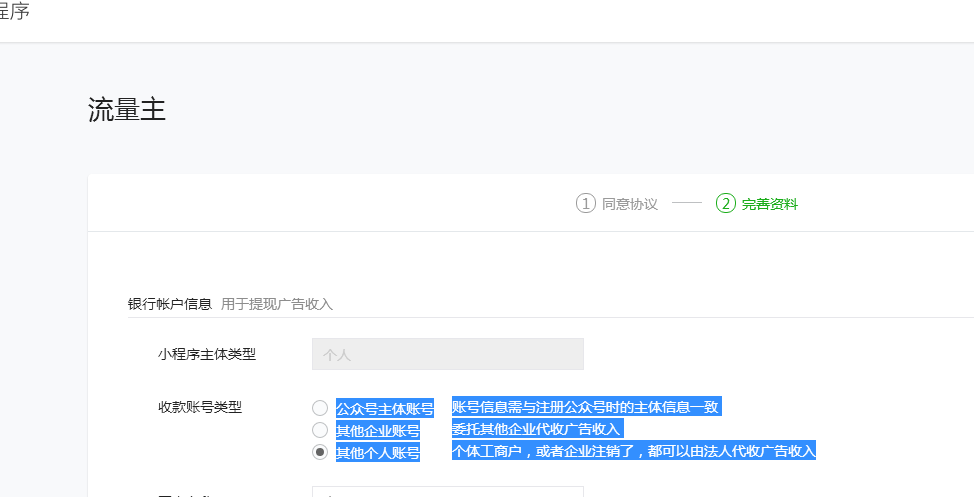 如需提交不同的结算信息,请先登录已开通流量主功能的帐号后台提交结算信息变更申请,待审核通过后再去开通新的帐号。