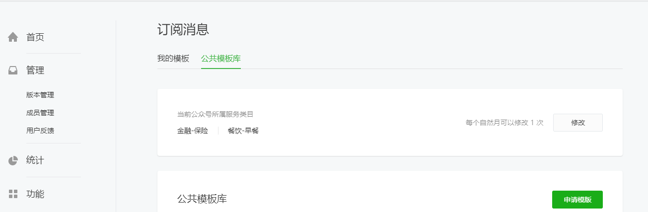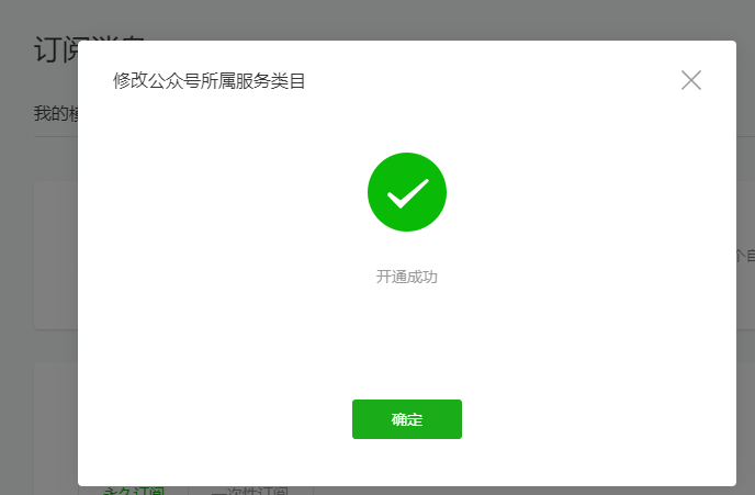 我方小程序最近开通了订阅消息功能。今日登陆后发现提示【修改公众号所属服务类目成功开通】,分别见图1, 图2。 但是我方并没有改过类目,设置中心查看小程序类目(图3)仍和之前一样,并且也没有图2 中的【金融保险】【餐饮早餐】类目。