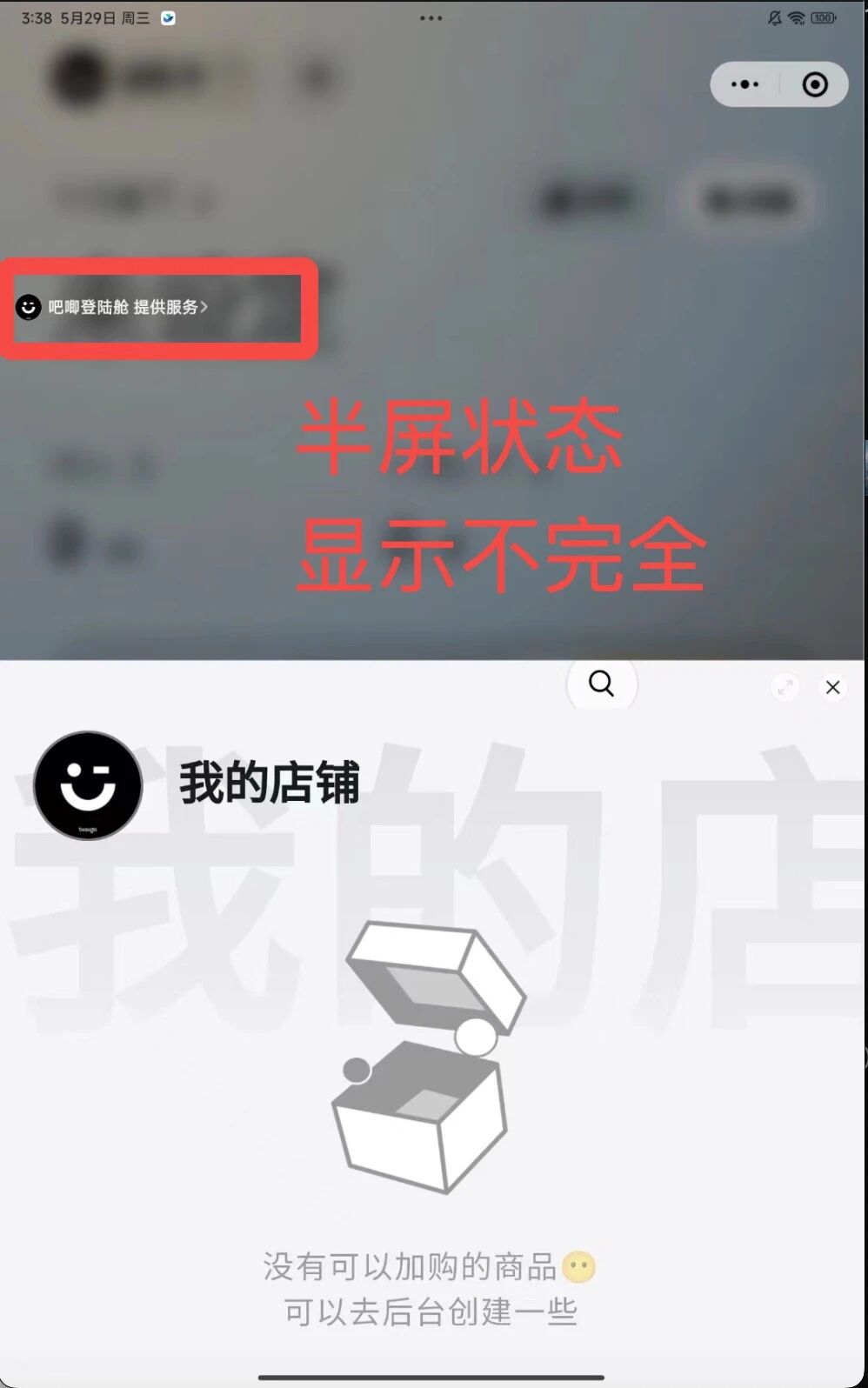 3、关闭小程序,重复步骤1,此时唤起的半屏小程序样式也会出现问题