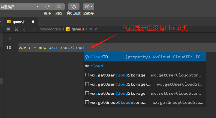 上图是文档里的教程,可以创建wx.cloud.Cloud实例,但实际在微信开发者工具里,没有Cloud类。