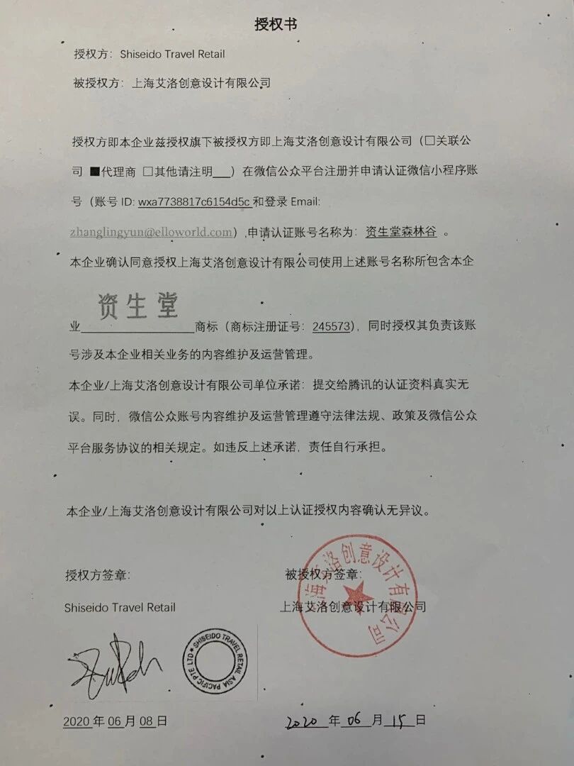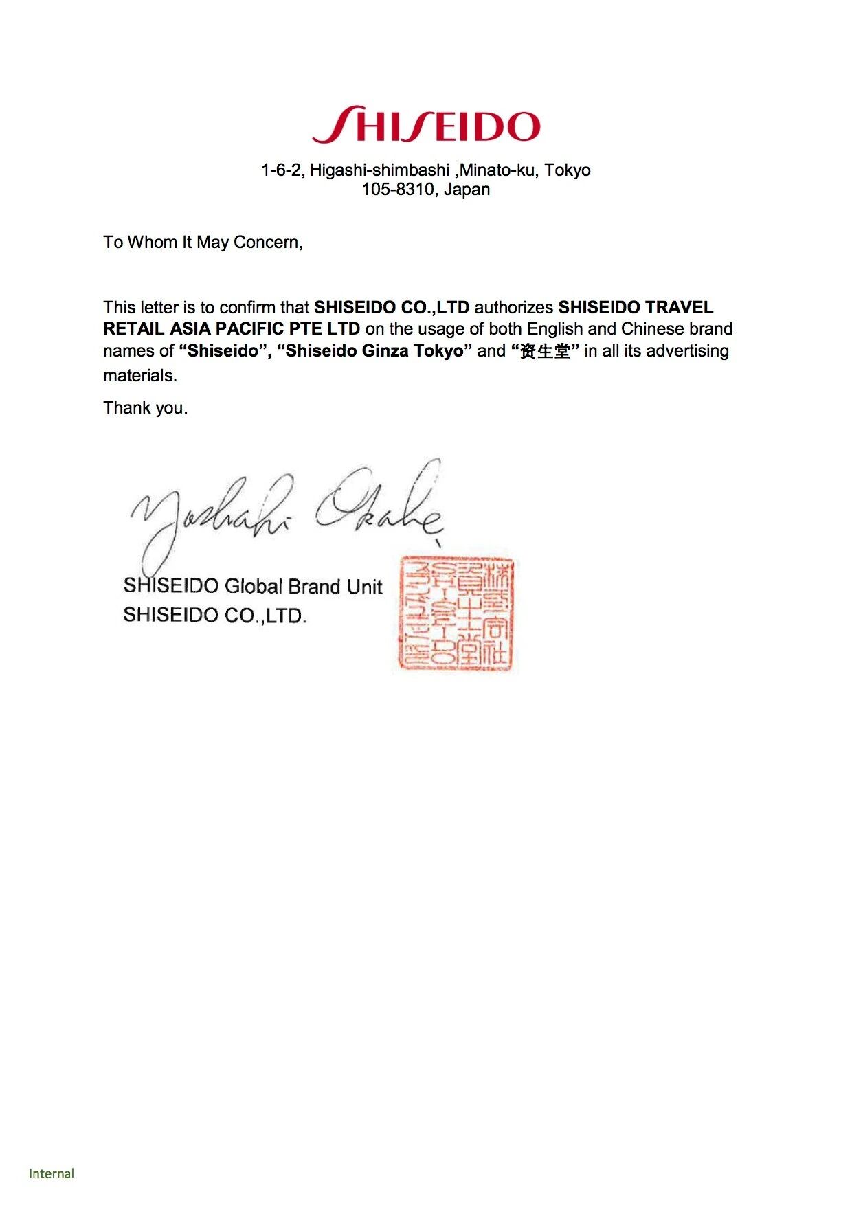 2,授权书中的授权方为Shiseido Travel Retail Asia Pacific Pte Ltd,属于海外主体,海外主体授权商标需提供(以下材料二选一)