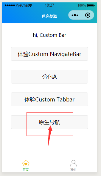 在开发工具中运行代码片段,然后点击“原生导航”按钮