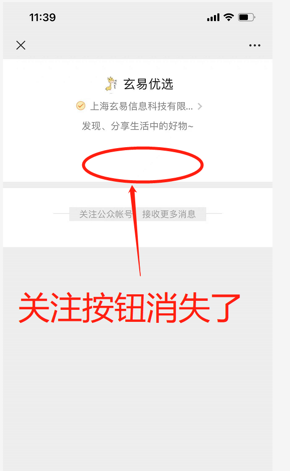 2.没有关注过的用户,用户在微信中直接访问以下链接,'关注' 按钮可以正常显示: https://mp.weixin.qq.com/mp/profile_ext?action=home&__biz=MzU4OTQxNjkxMw==&scene=110#wechat_redirect