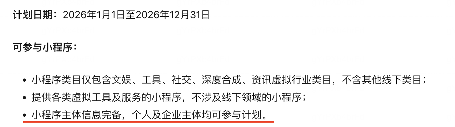 小程序主体信息完备,个人及企业主体均可参与计划。