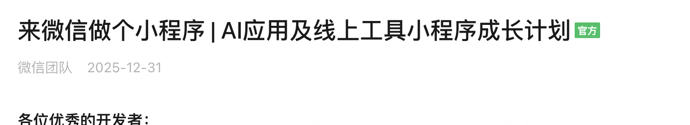 我是一个个人开发者,目前想要参加《2026年AI应用及线上工具小程序成长计划》。