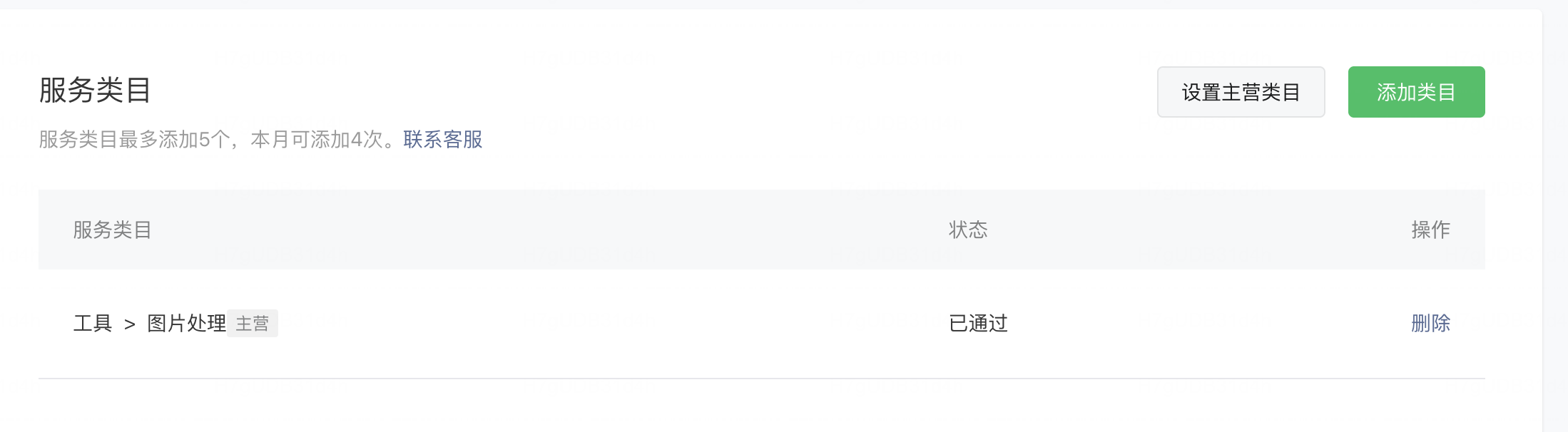 我的小程序服务类目已设置为 “工具 > 图片处理” 且已通过审核。