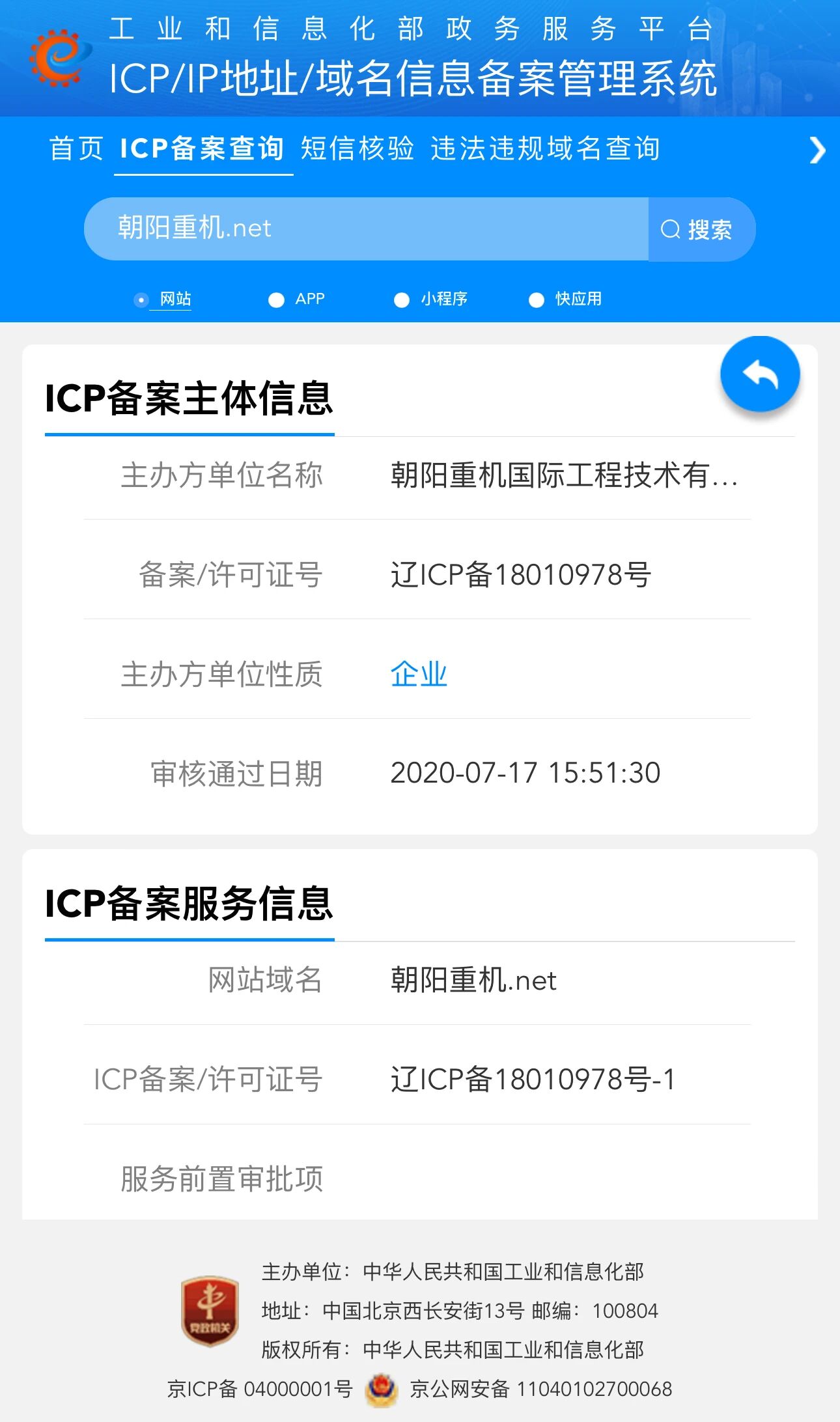 域名:http://朝阳重机.net 请官方抓紧给恢复一下,我这边着急使用,我这个域名是中文域名,这几天突然就成这样了.急急急!