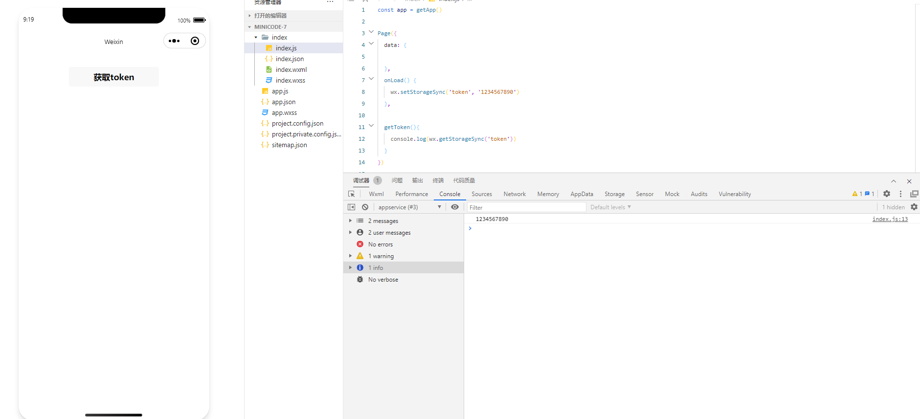 手动将token设置为111,点击获取token控制台打印的还是原来的1234567890