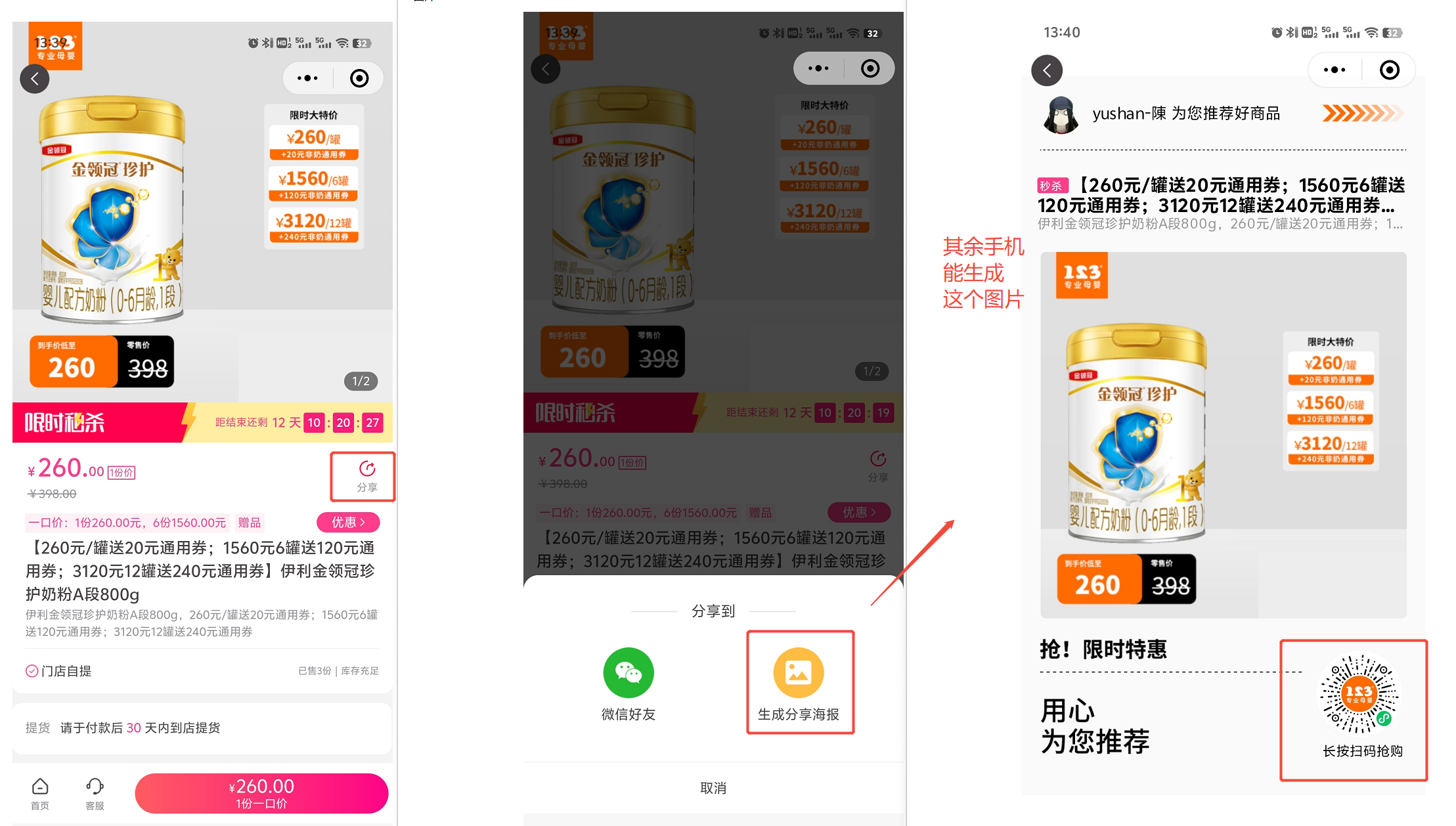 3、在商品详情界面 点击分享按钮,生成分享海报