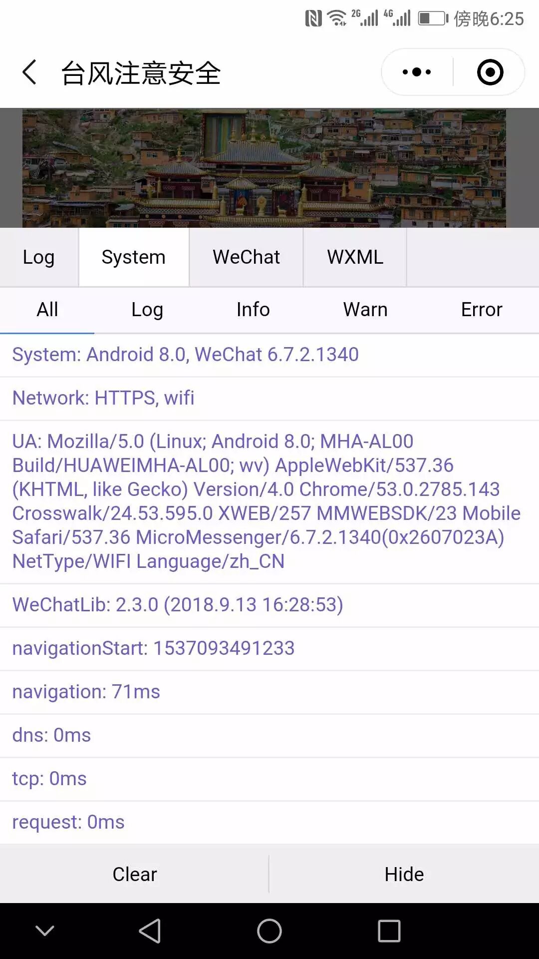 机型为华为meta9,微信版本6.7.2.1340,android8.0